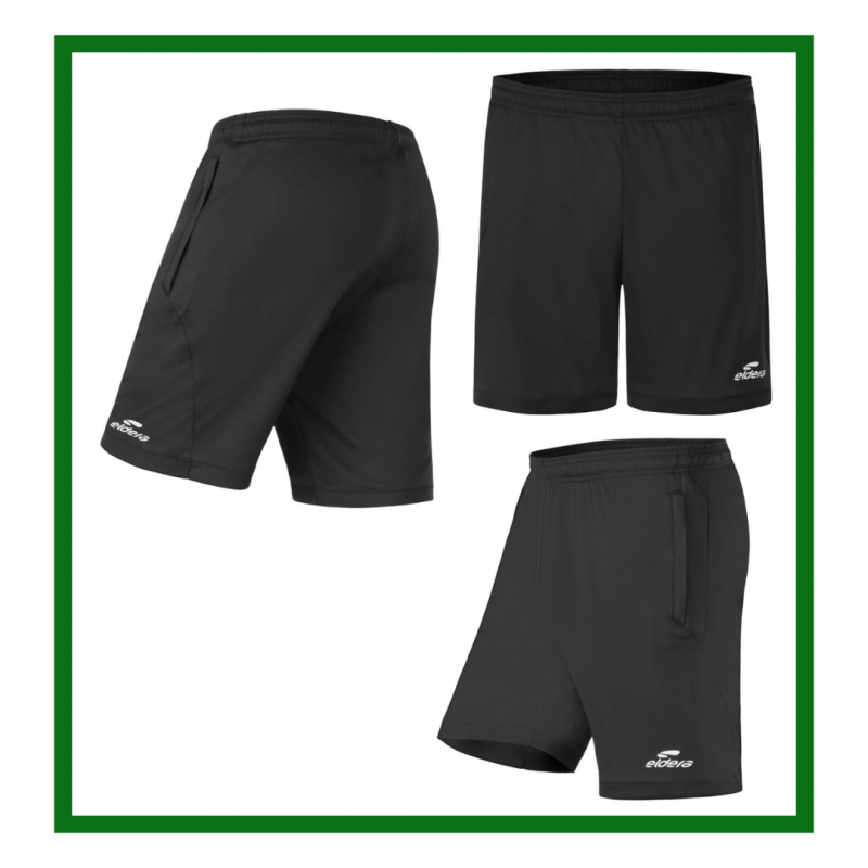 Bermuda en jersey polyester • Empiècements mesh latéraux • Ceinture élastiquée avec cordon de serrage intérieur • Poches grand format latérales zippées • Logos printés • Composition 100% polyester.